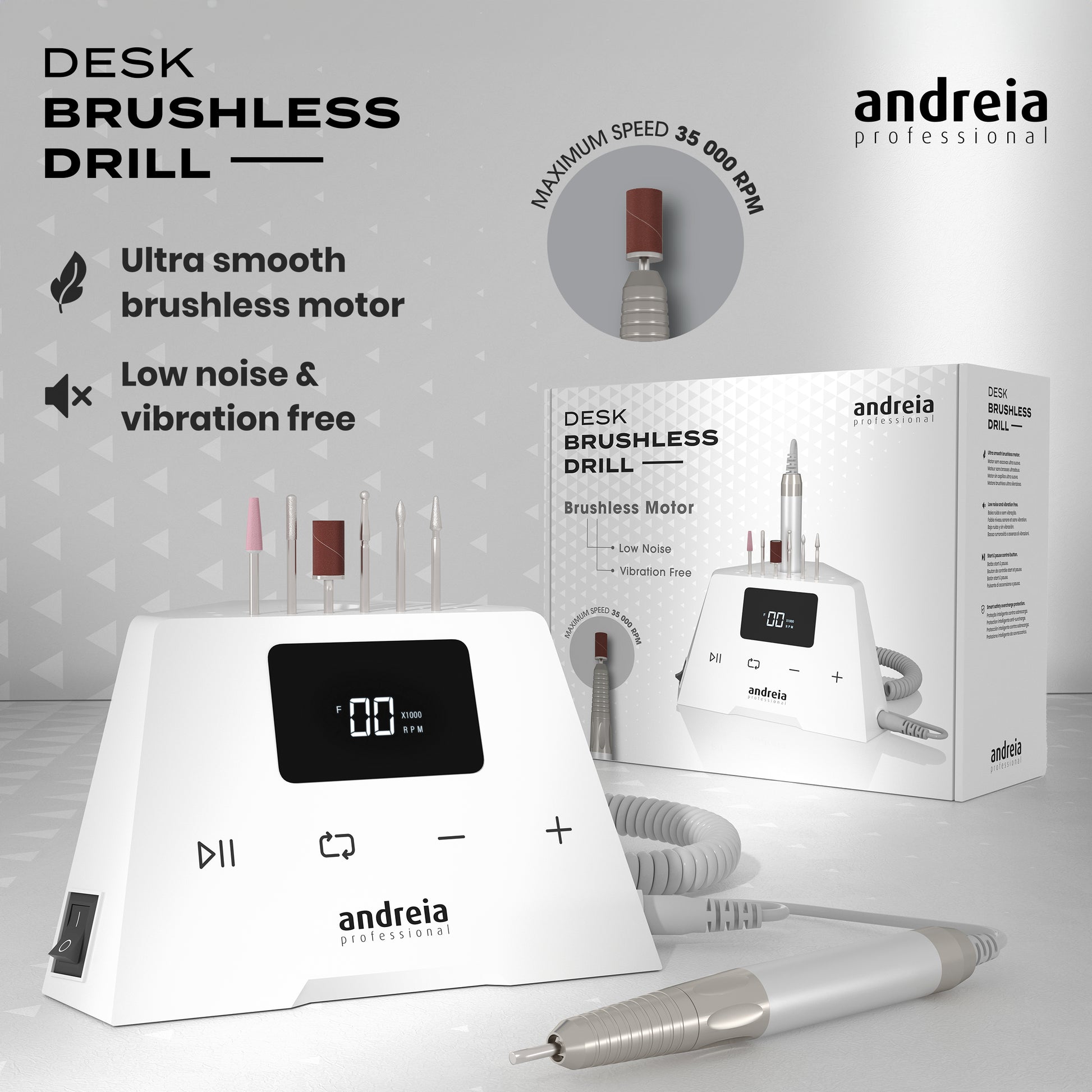 Of je nu gel, acryl of natuurlijke nagels perfectioneert, de Andreia Desk Brushless Drill combineert krachtige prestaties met gebruiksvriendelijke functies. Een onmisbaar hulpmiddel voor elke nagelprofessional!